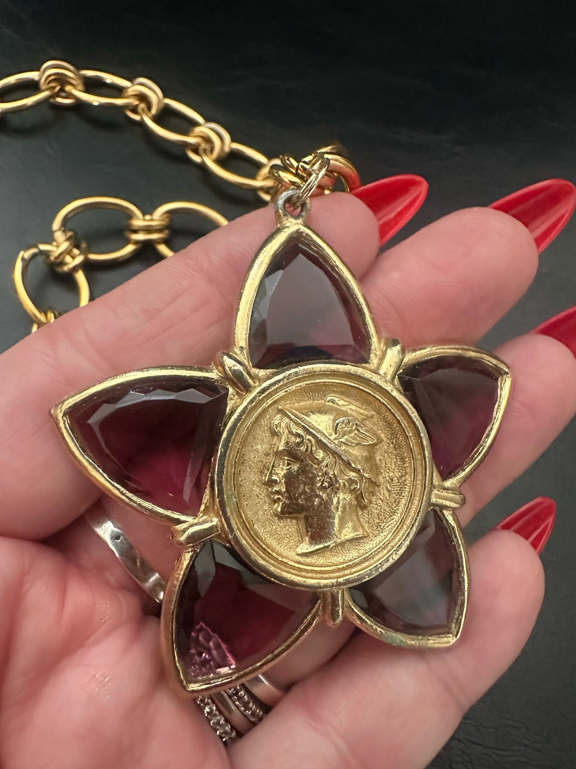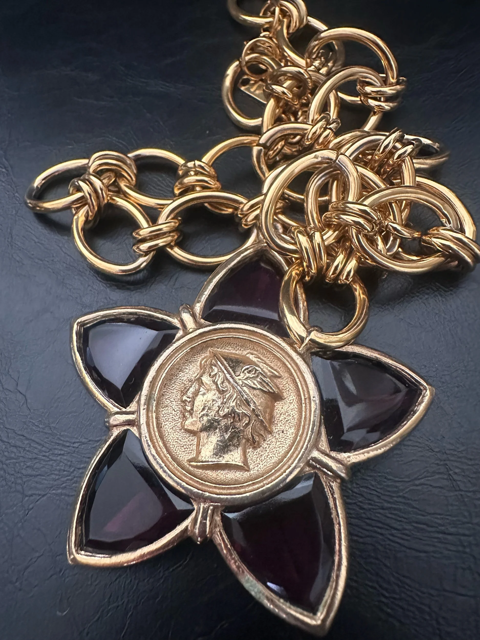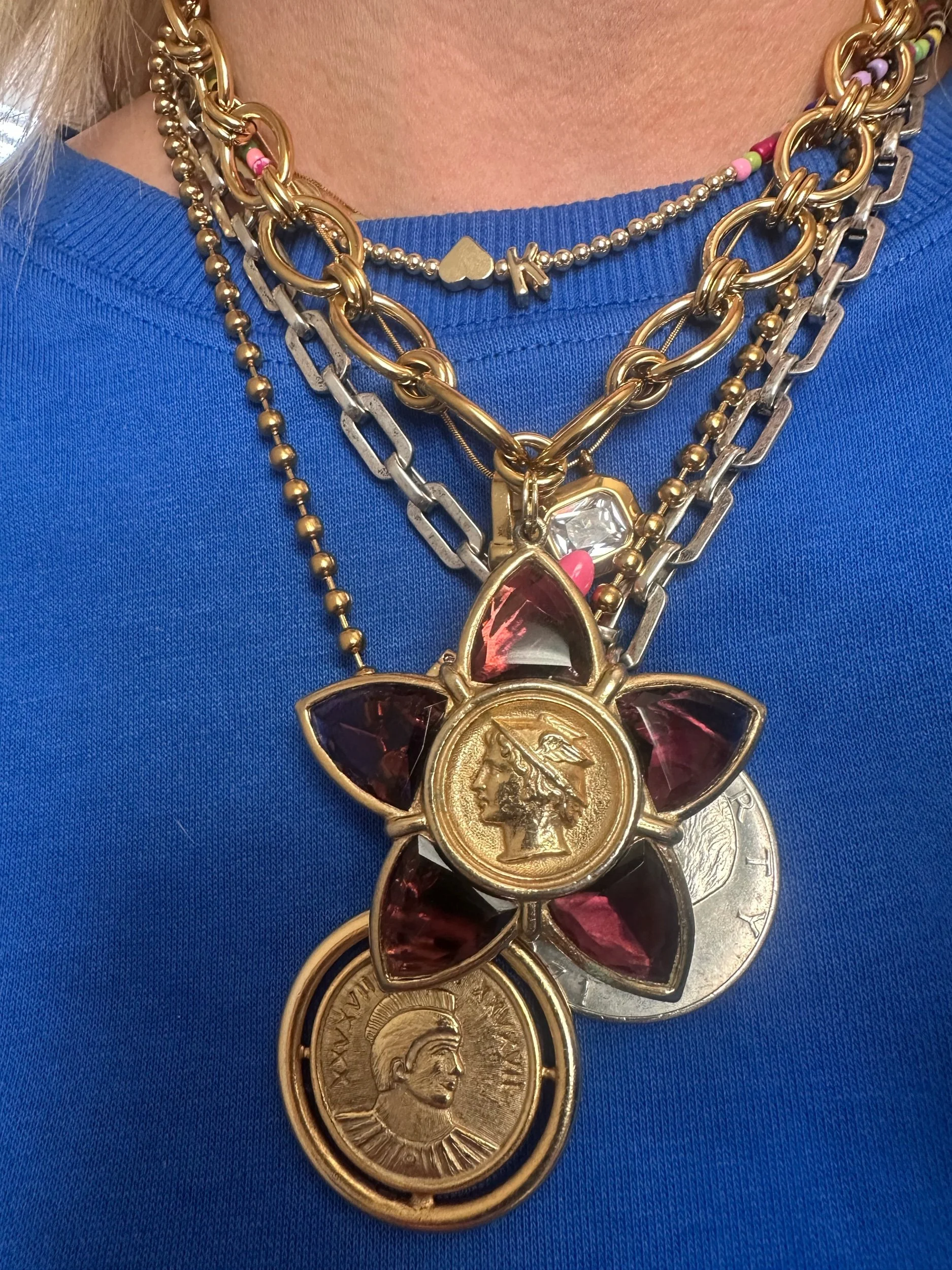 Kessley sourced vintage coin + has placed it on her Bordeaux chain. The Bordeaux chain is color guaranteed for 2 years.