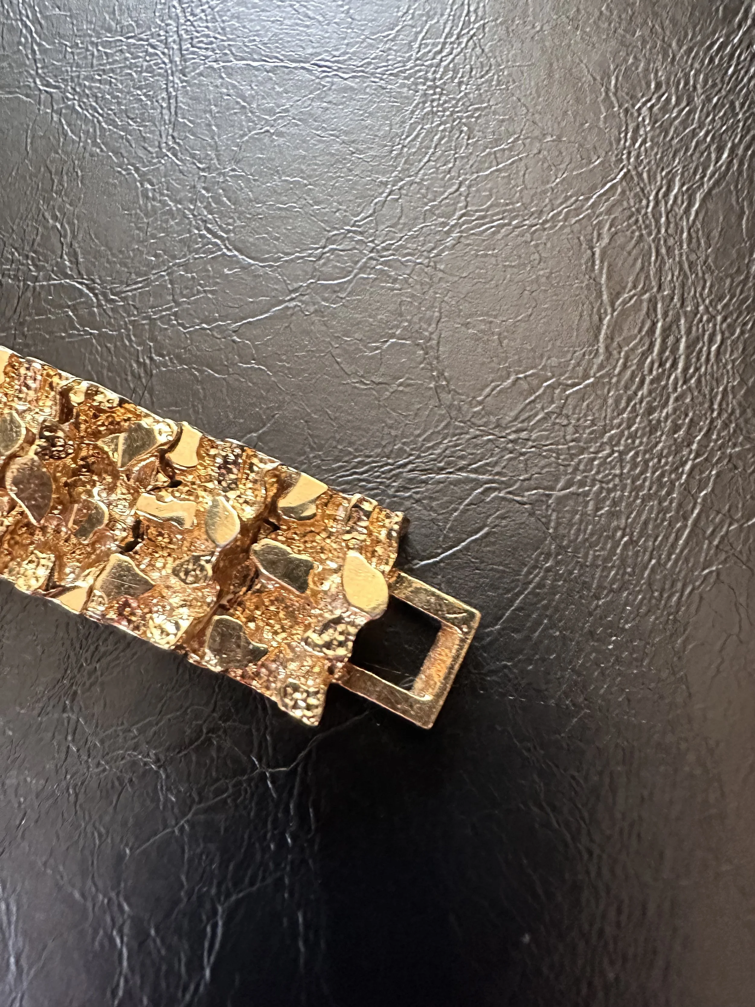 Vintage heavy, gold tone, European nugget bracelet. Side clasp opens for opposite end of bracelet.