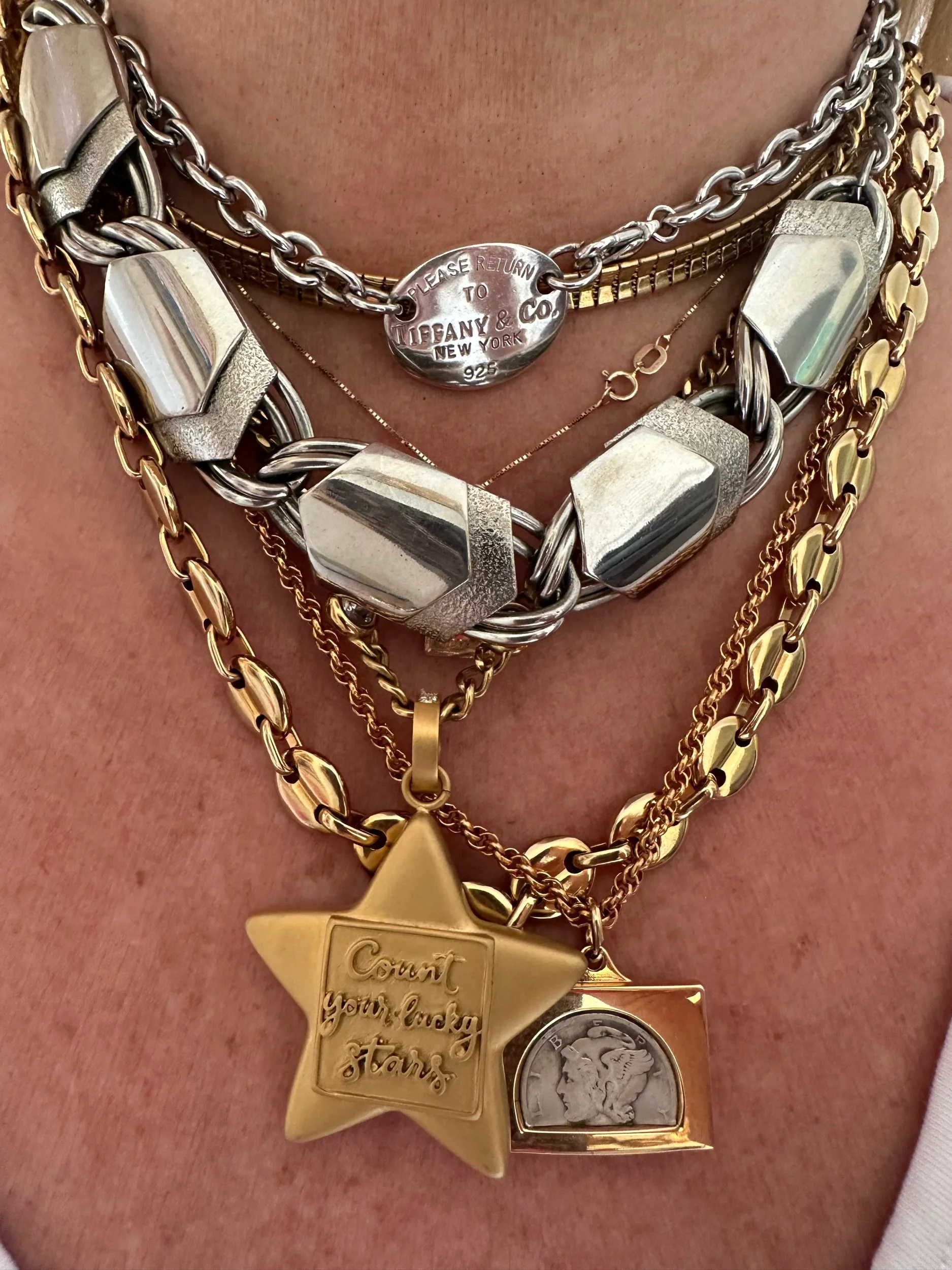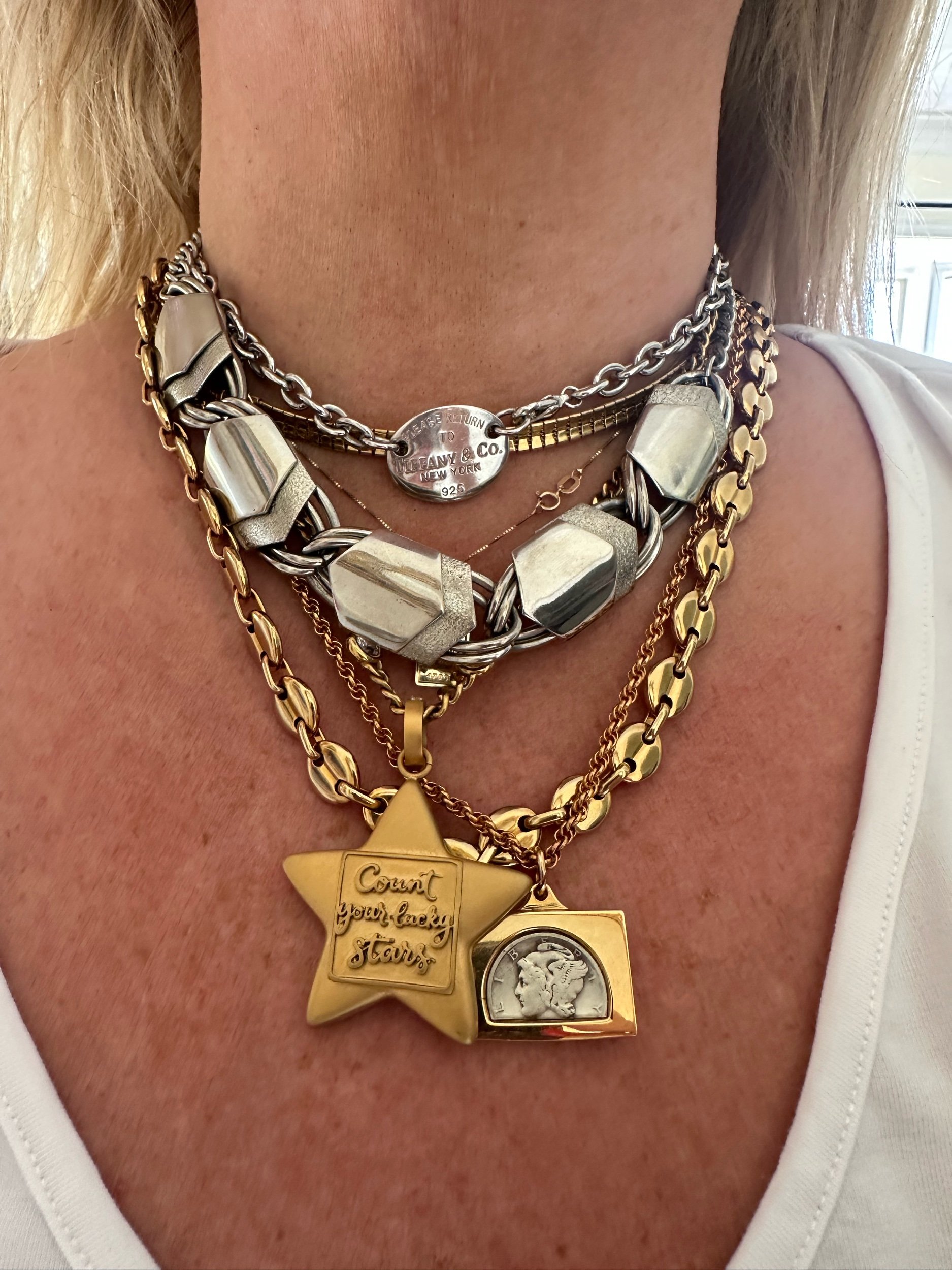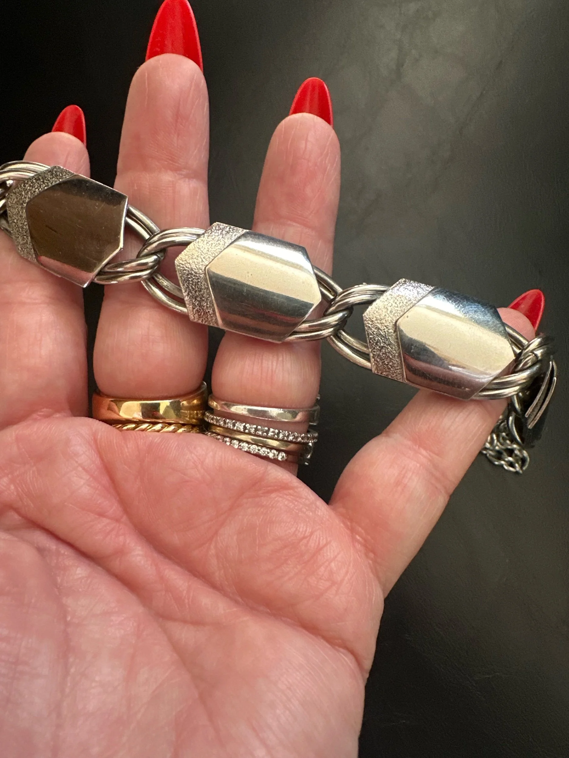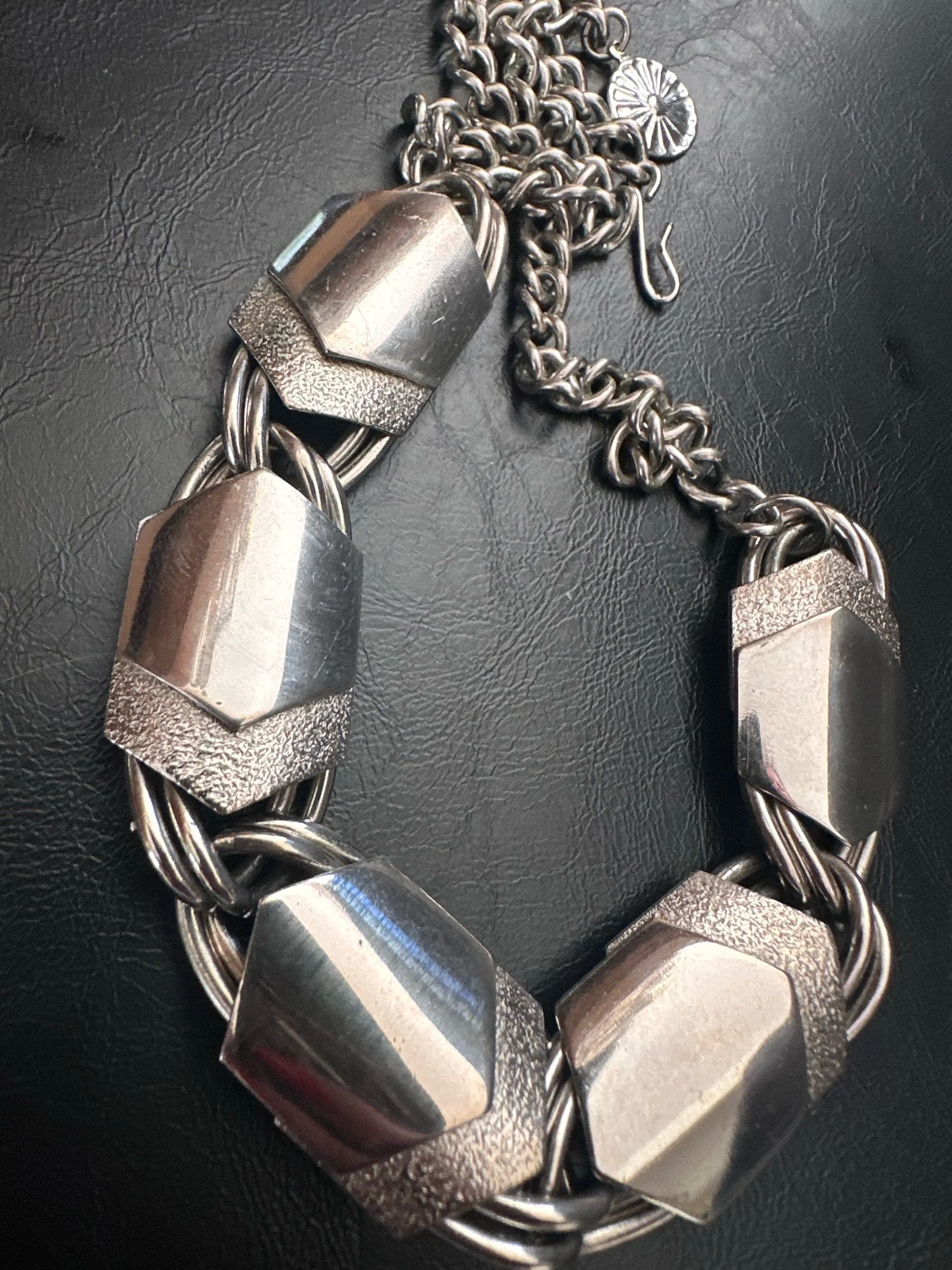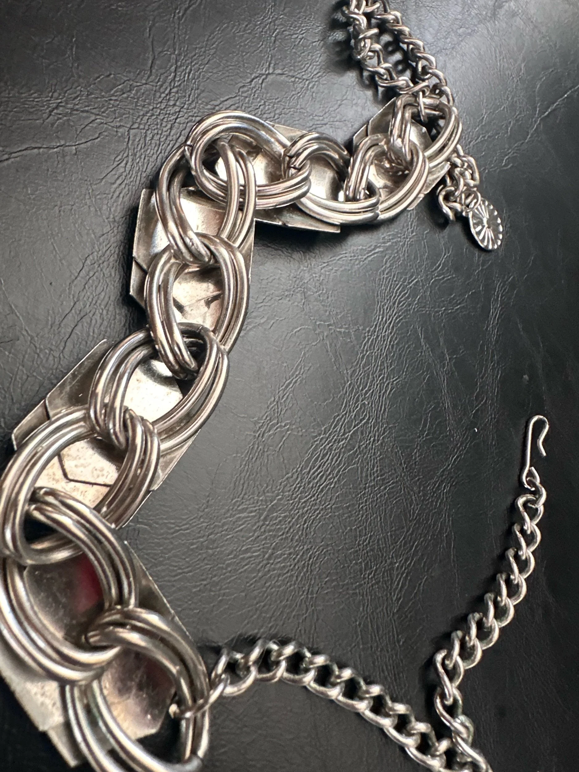 Obsessed. This vintage silver shield like necklace is so unique, sexy, and easy to wear. Stack approved. Shepherd’s hook closure.