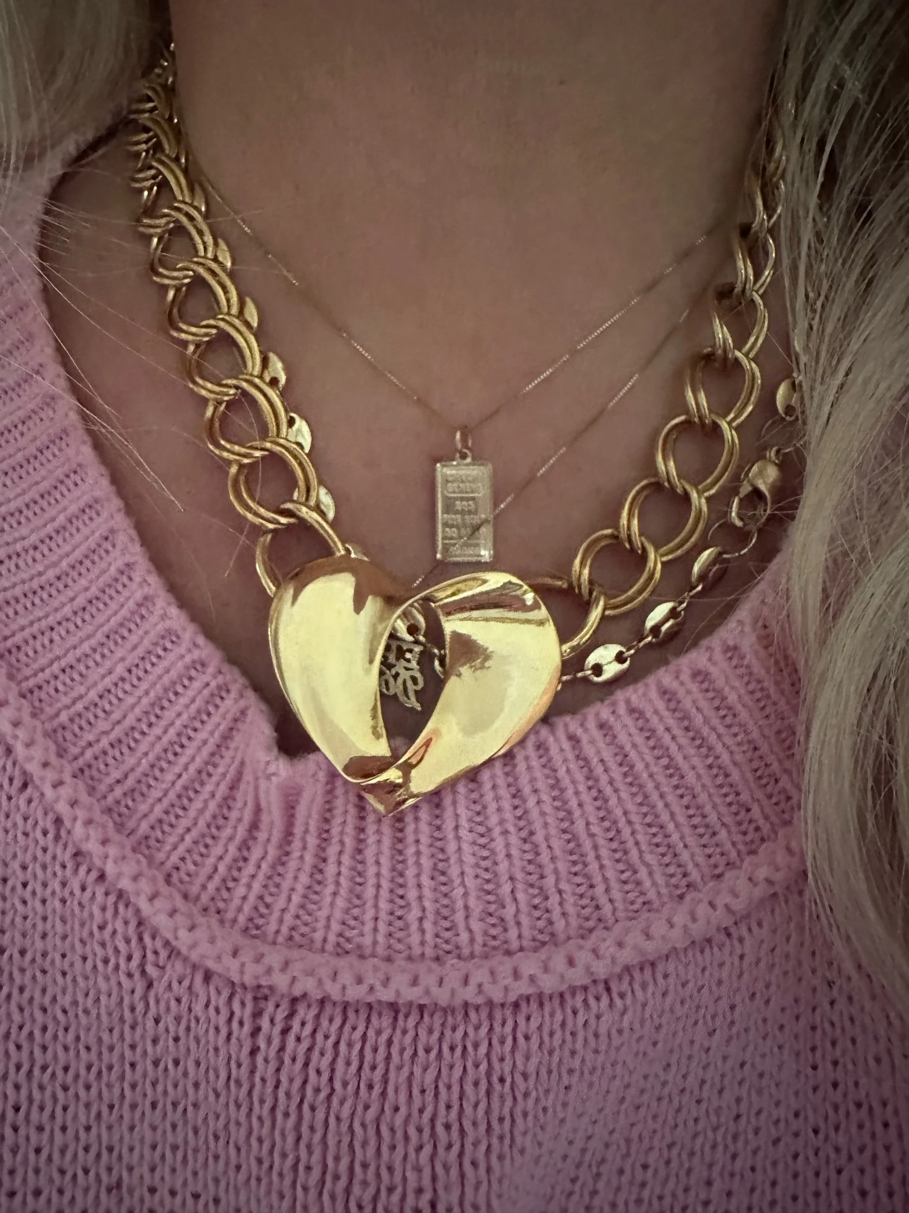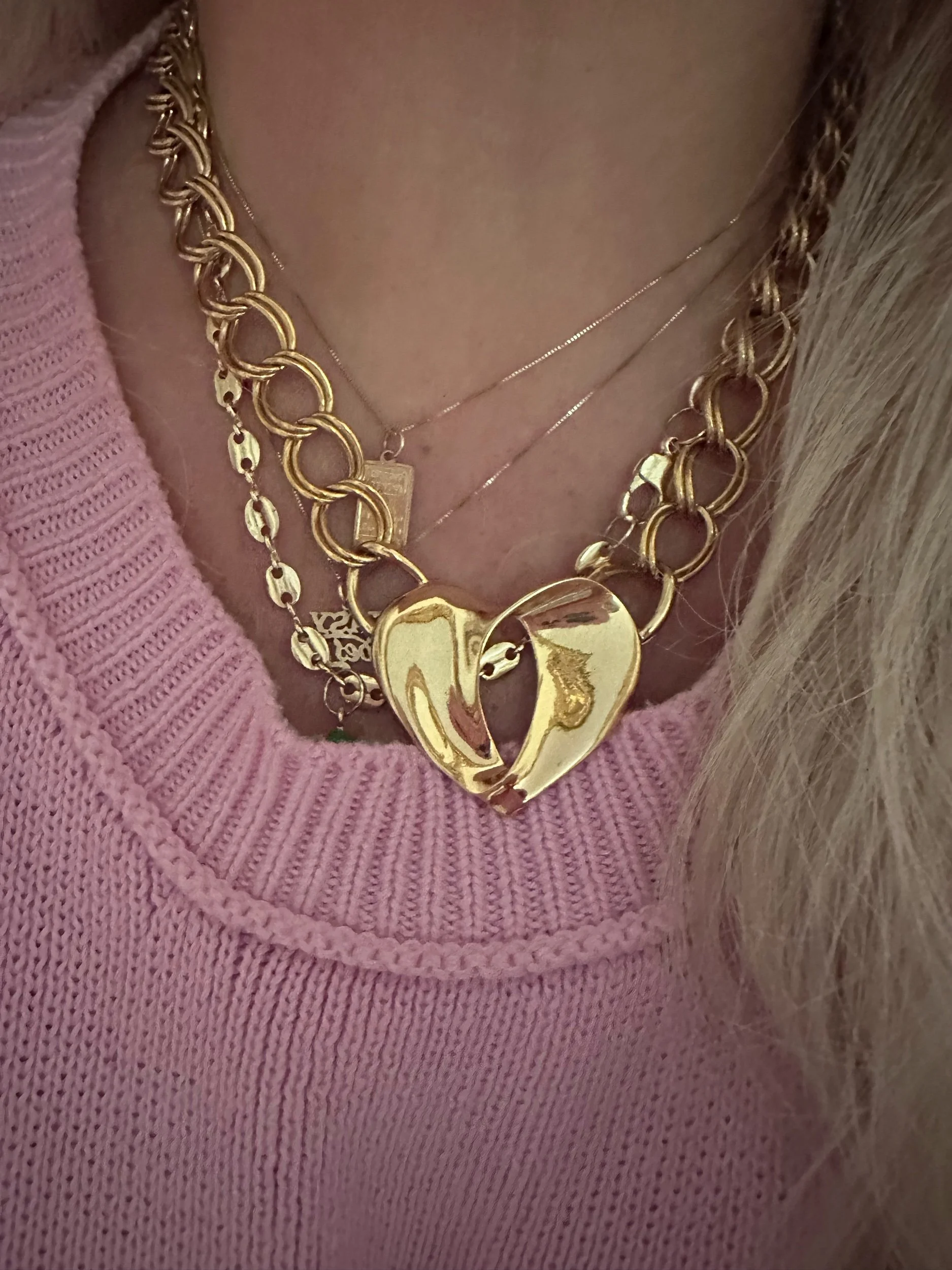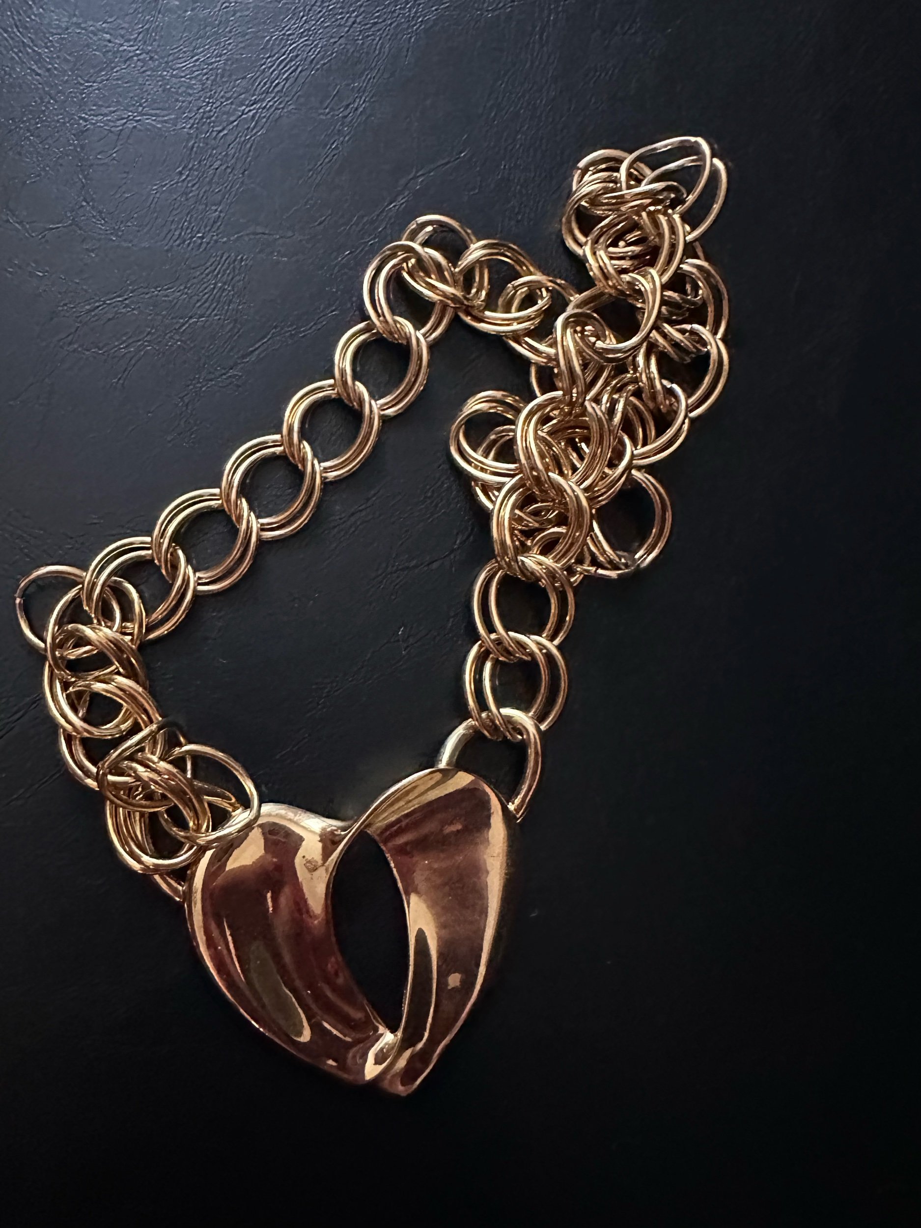 Double link Chain necklace and open heart design. Unsigned vintage. Recently seen on beloved stylist Rachel Zoe!